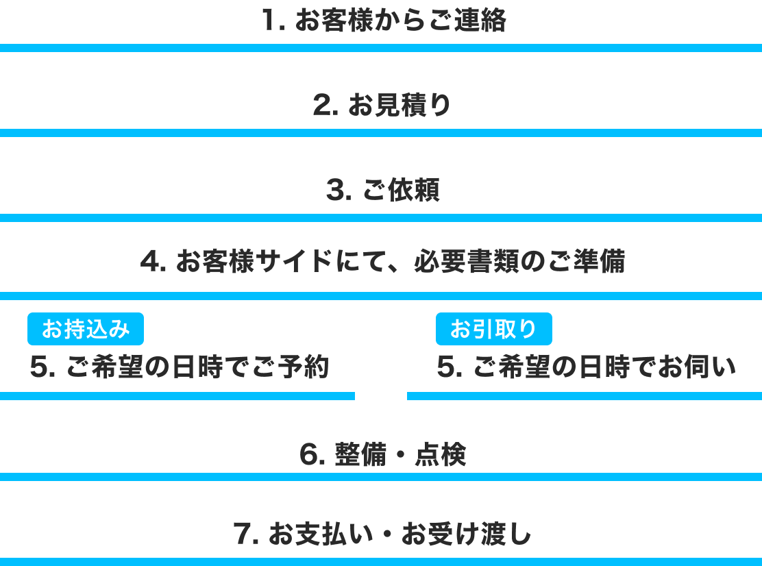 当社ではご入庫から整備、納車までの工程はもちろん、その後のアフターケアまで一貫して専属の整備士が担当させて頂きます。